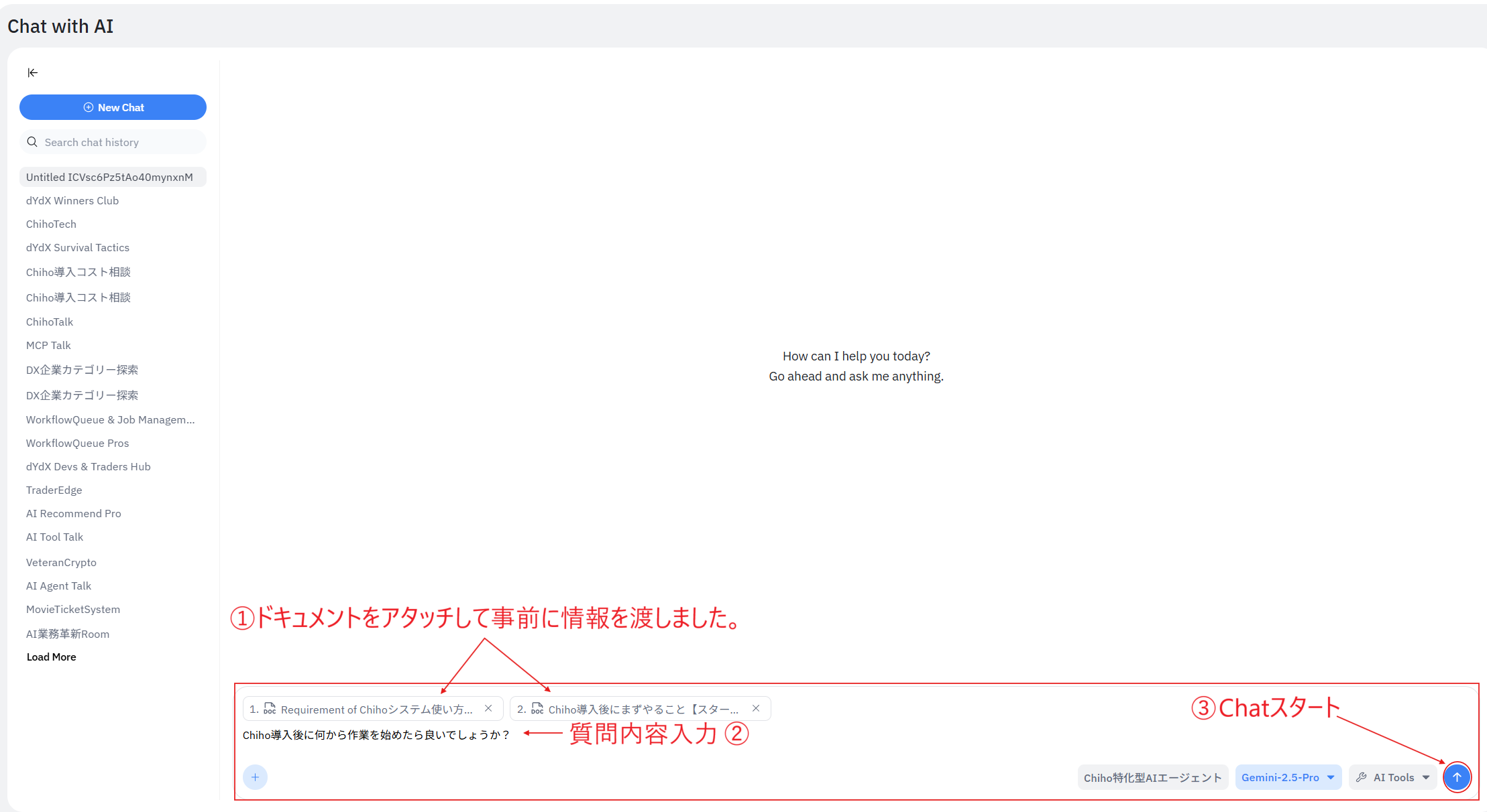 - 事前情報として、Chihoのドキュメントをアタッチします。