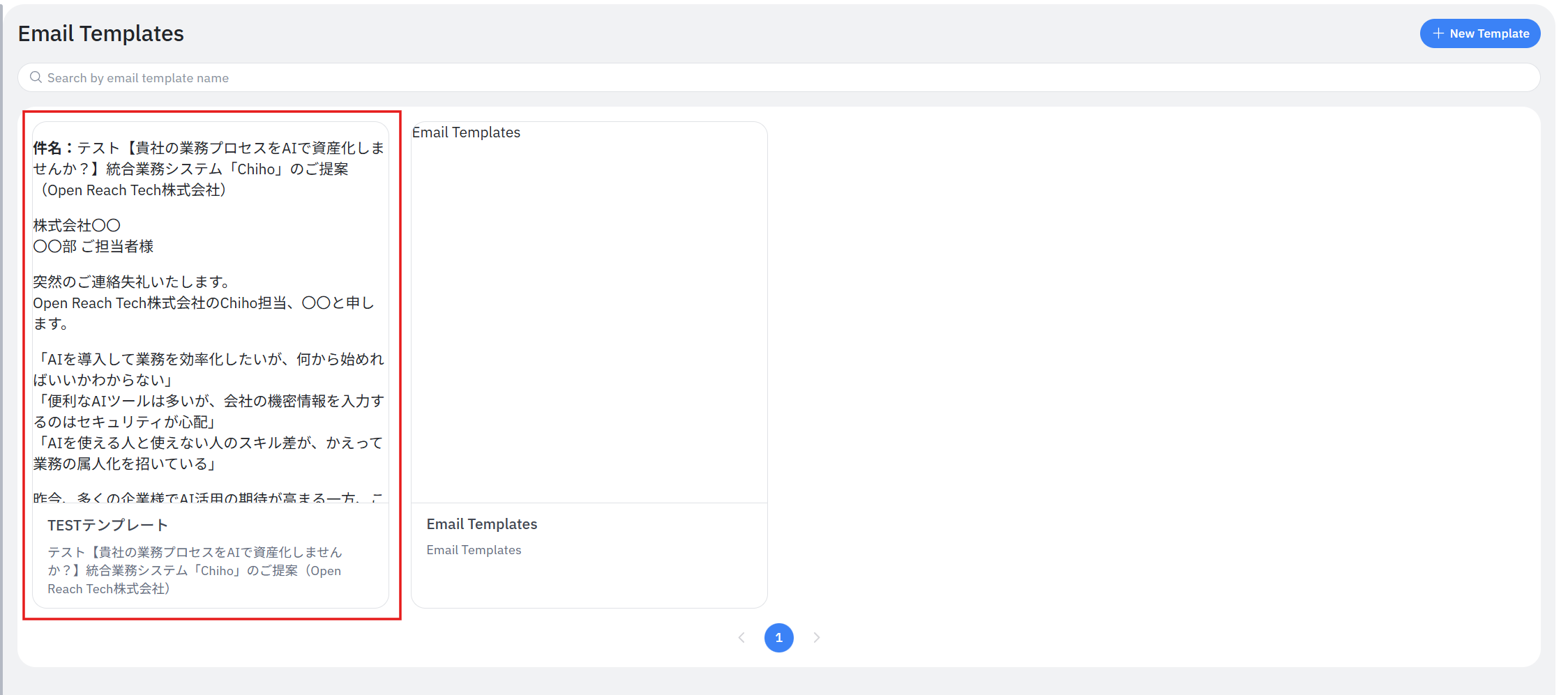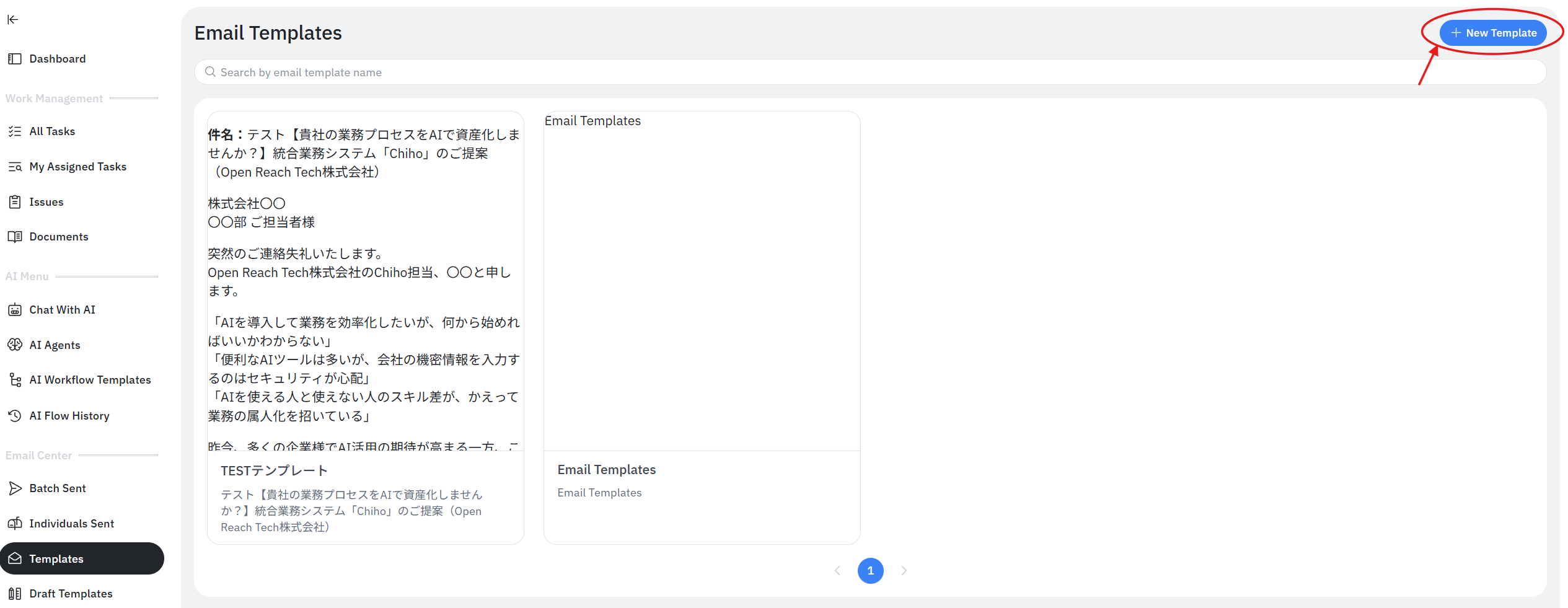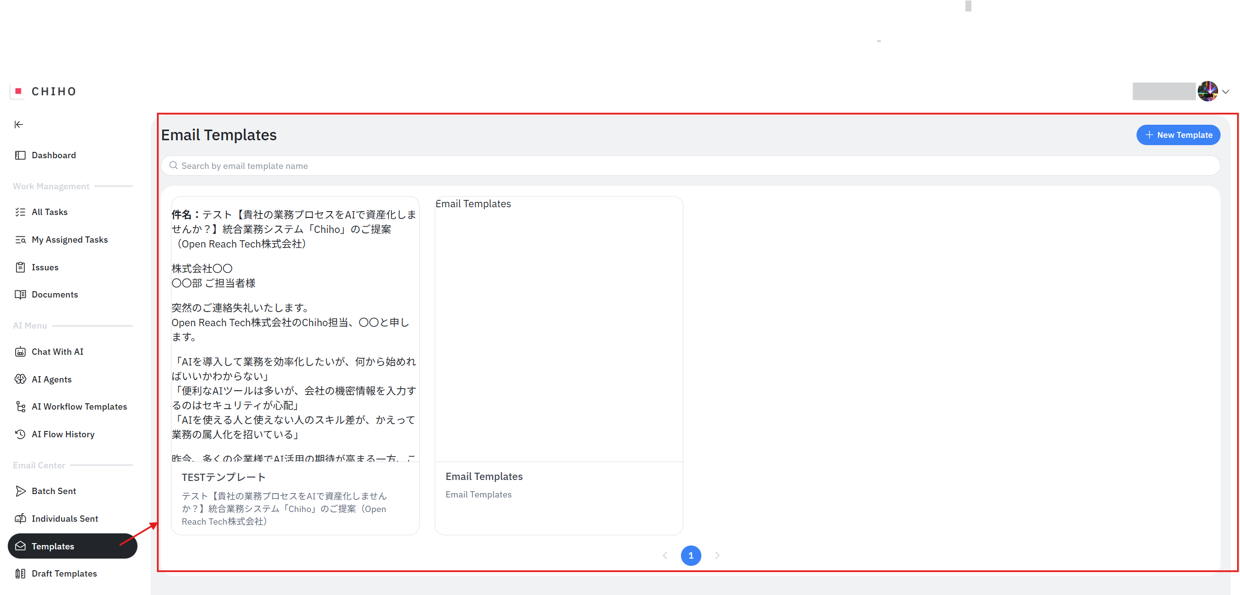 Chihoの「Email Templates」機能は、メールマーケティングで使用するメールの 「設計図」や「雛形」を作成・管理するための場所 です。