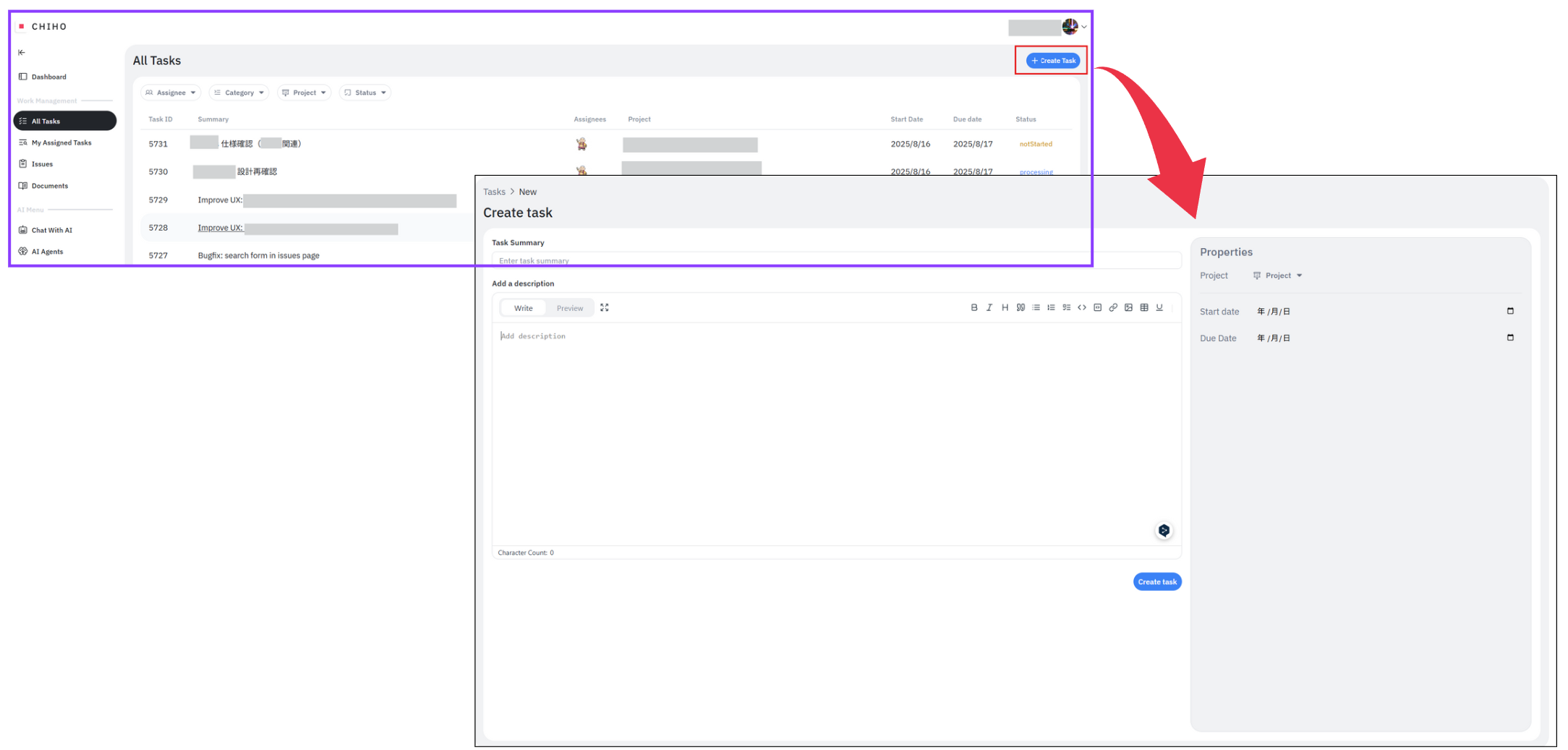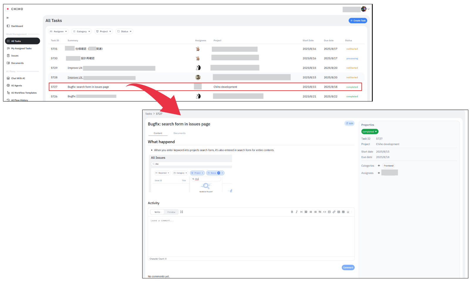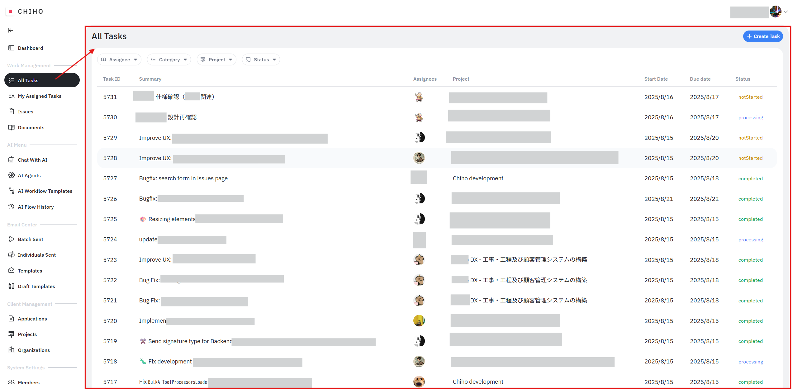 Chihoの「All Tasks」機能は、個々のタスク管理に留まらず、組織全体の業務の流れを可視化し、円滑にするための重要な機能です。