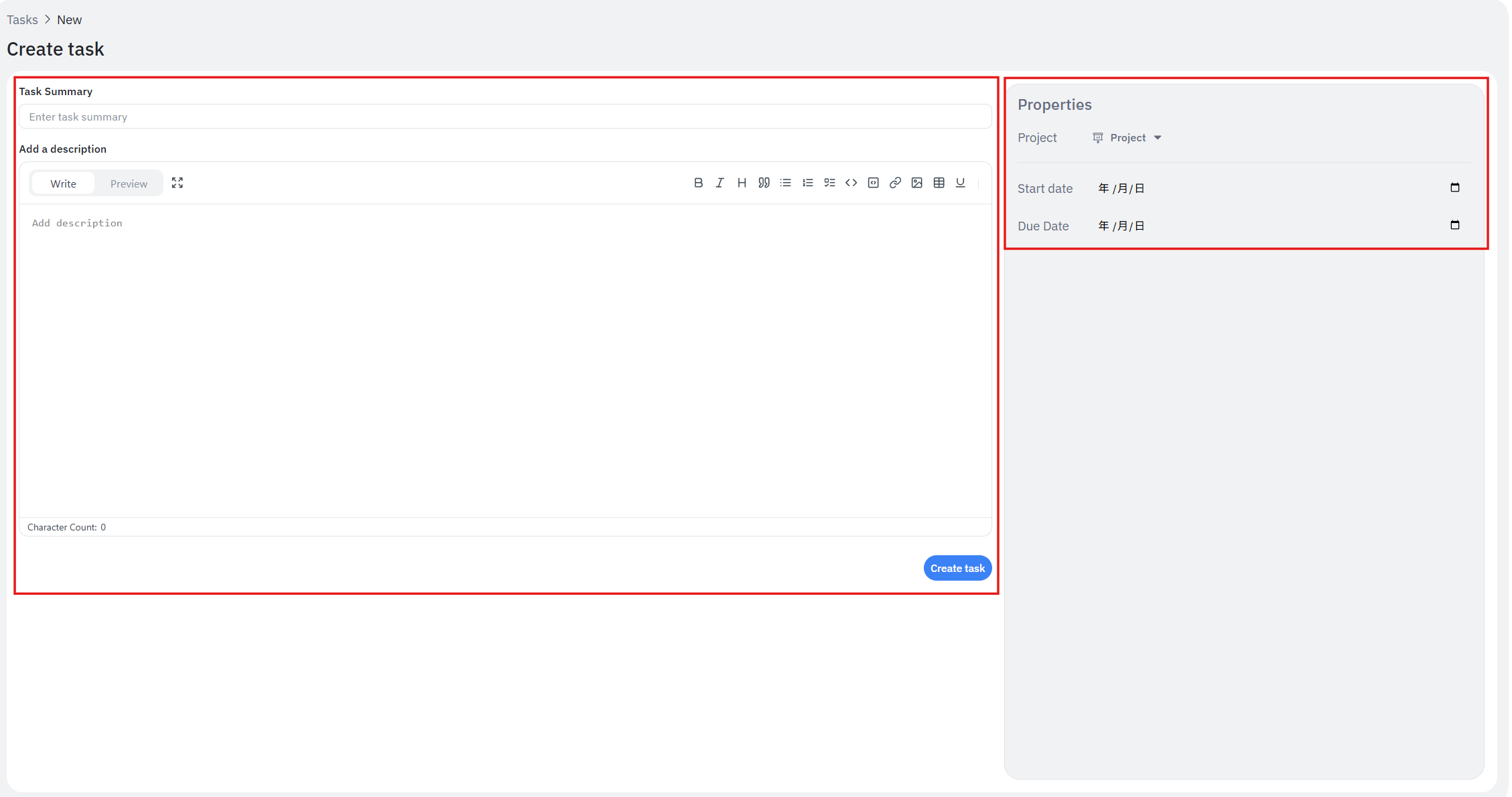 この画面から、新しいタスクを作成することも可能です。