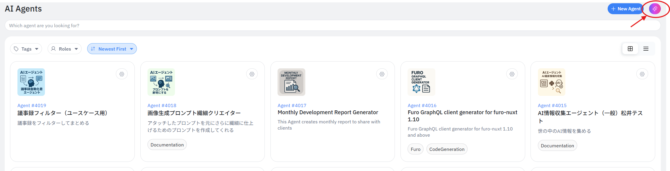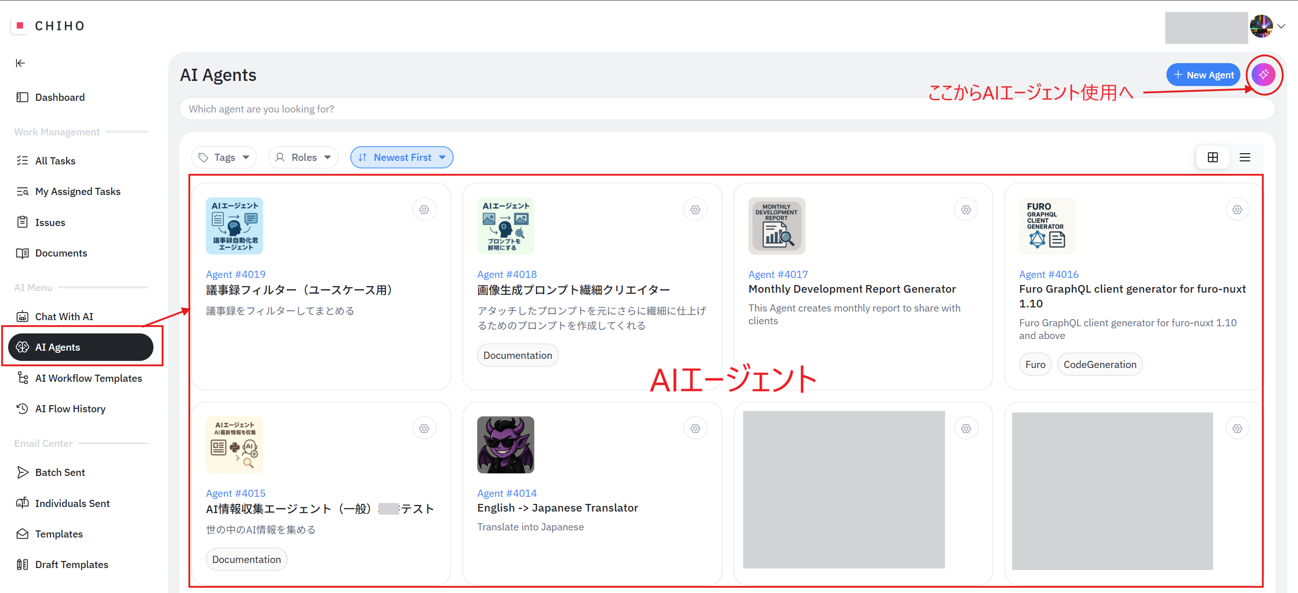 Chihoのサイドメニューから「AI Agents」をクリックします。