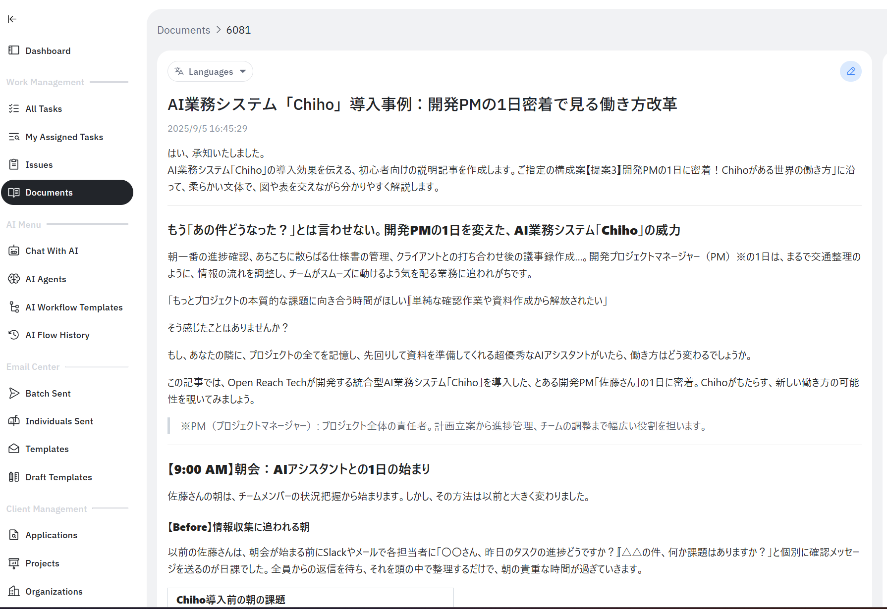 ChihoのAIワークフローを活用することで、記事作成業務は以下のように進化します。